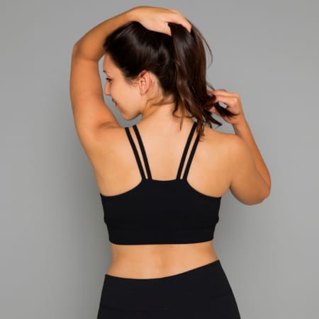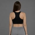 Top con puño sin elástico y bretel ancho, que se cierra en la espalda más cercano a la sisa. Tiene un ajuste importante que permite movilidad con mayor seguridad.